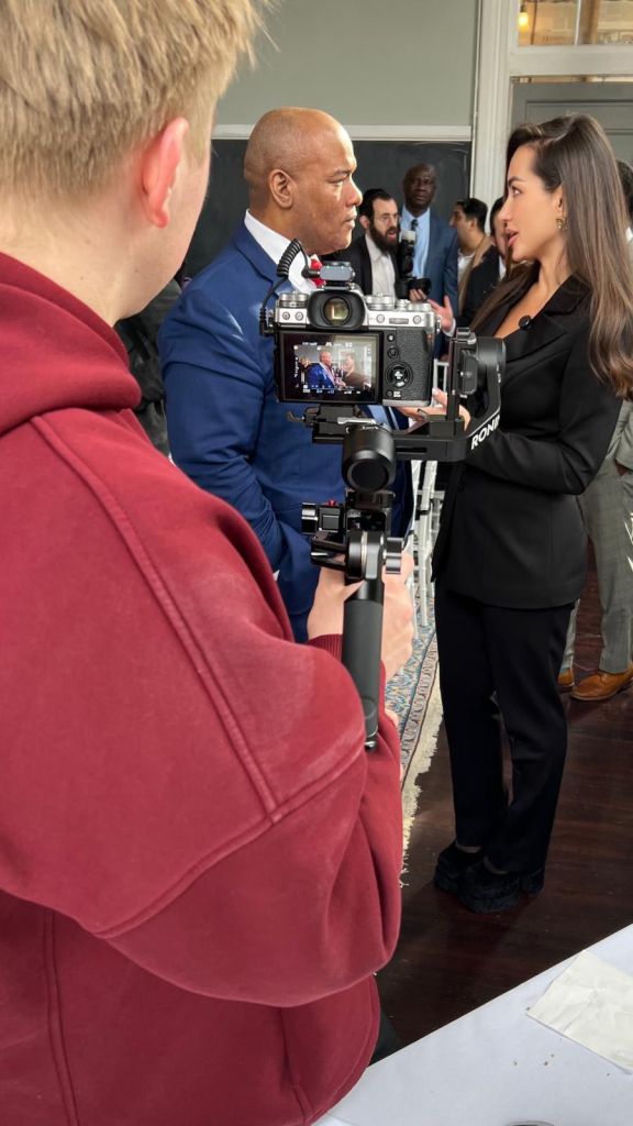 Then one day, she saw a casting call for a new show on Novyi Kanal, one of Ukraine’s major national networks. “They needed reporters for an entertainment program, people who could speak, move, ask good questions. I wasn’t a journalist. But I decided to try.” The audition went well. “From the first day, all the doors opened,” she recalls. “It felt natural. I understood that journalism is not only about education. It’s about personality, character, and energy.”